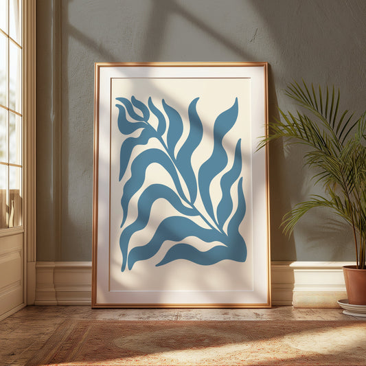 Abstract Blue Leaf Botanical Art Wall Posters