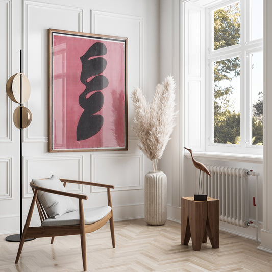 Abstract Curved Shapes on Pink Background Posters