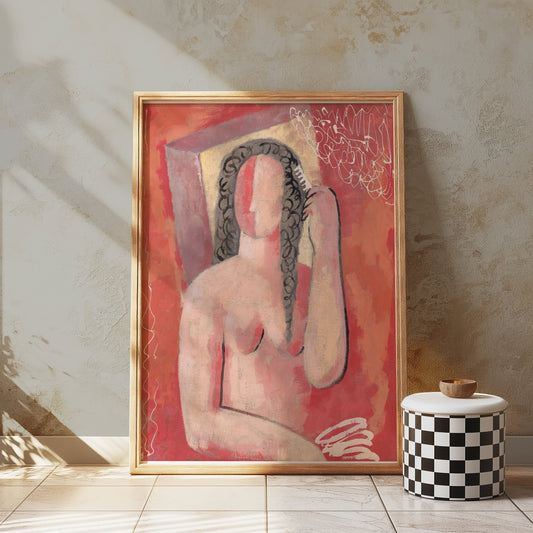 Abstract Female Figure Combing Hair Art Print Posters