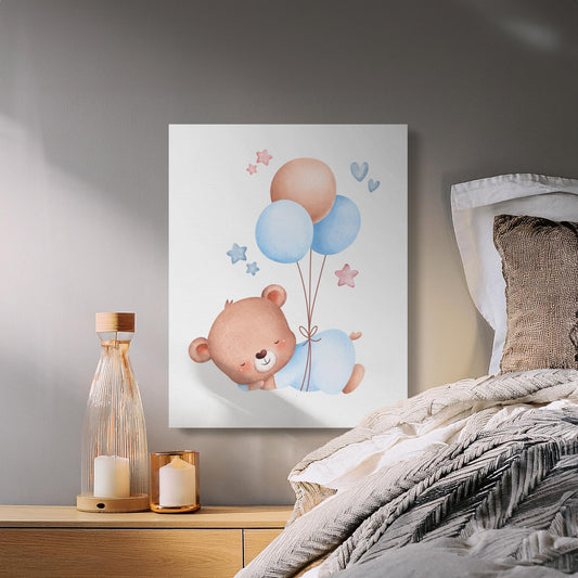 Adorable Baby Bear with Balloons Nursery Canvas Wraps