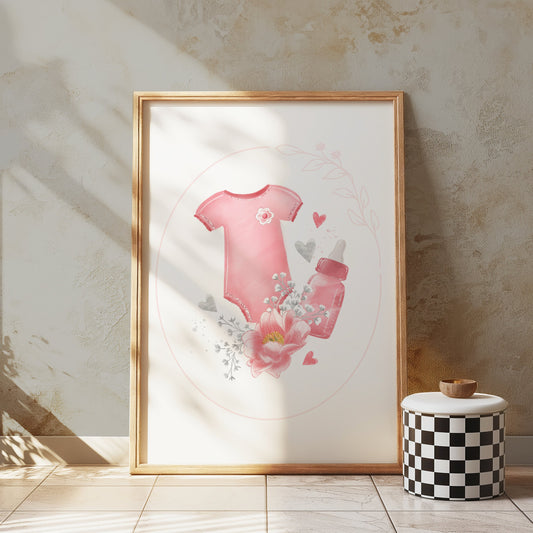 Adorable Baby Bodysuit with Heart and Flowers Posters