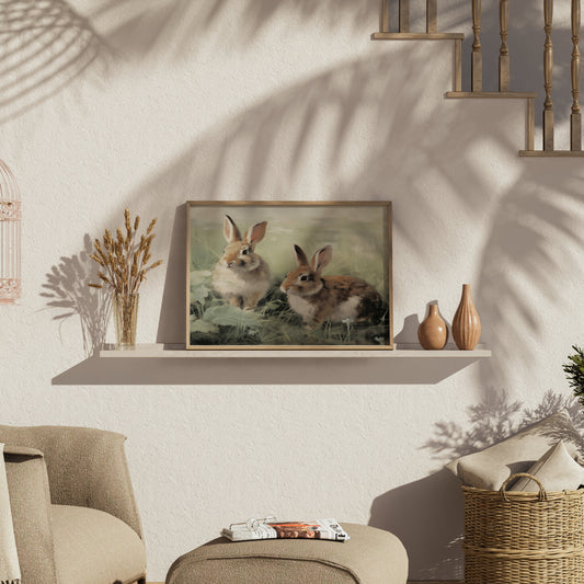 Adorable Bunnies in Meadow Scene Art Print Posters