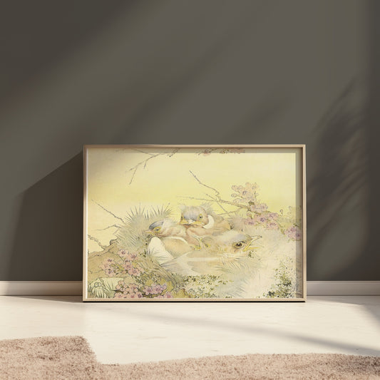 Adorable Chicks in Nest with Floral Background Posters