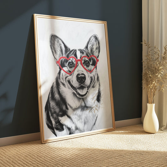 Adorable Corgi With Heart Shaped Glasses Posters