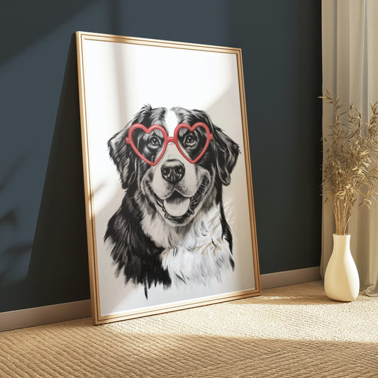 Adorable Dog Wearing Heart Shaped Glasses Posters
