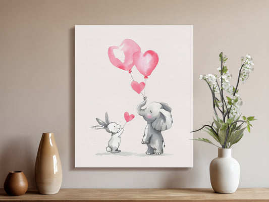 Adorable Elephant and Bunny Nursery Canvas Wraps