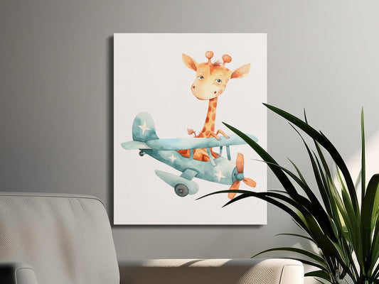 Adorable Giraffe Flying Plane Nursery Canvas Wraps