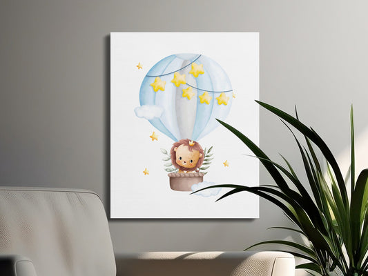 Adorable Lion in Hot Air Balloon Nursery Canvas Wraps