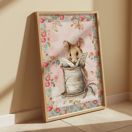 Adorable Mouse Reading Newspaper Theme Art Print Posters