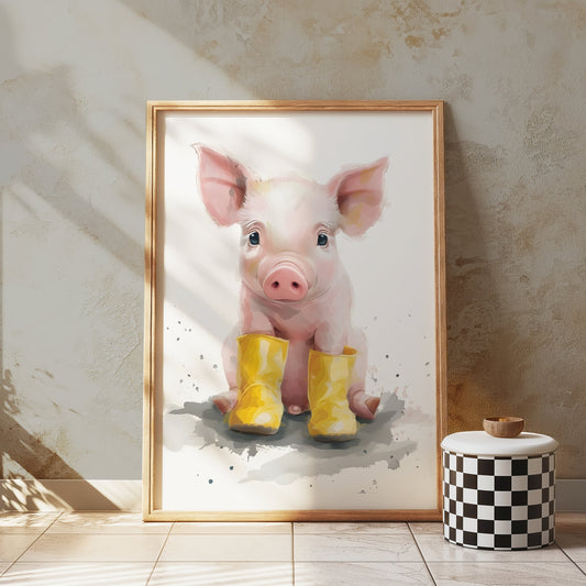 Adorable Piglet with Yellow Boots Animal Art Posters