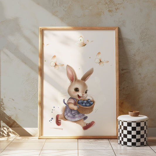 Adorable Rabbit with Blueberries Wall Art Posters