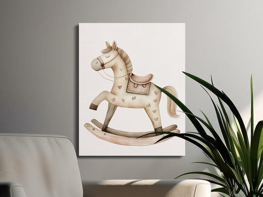 Adorable Rocking Horse Nursery Wall Art Canvas Wraps