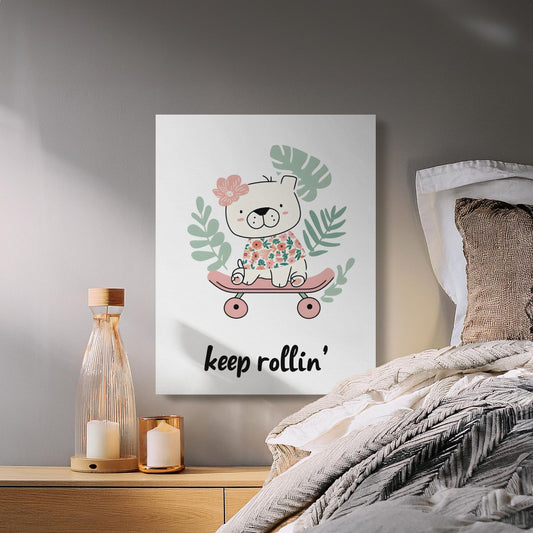 Adorable Skateboarding Bear Nursery Canvas Wraps