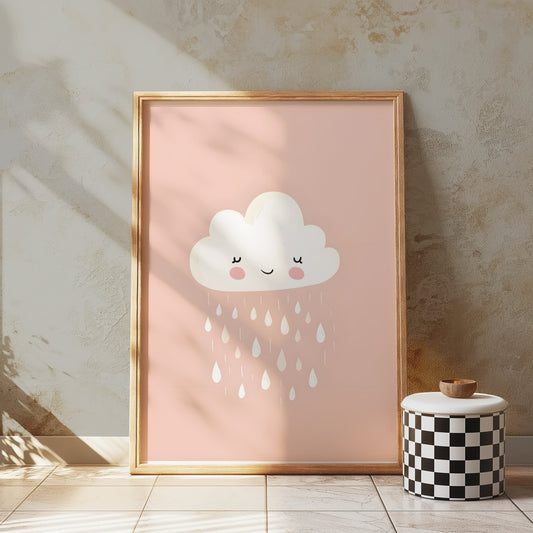 Adorable Smiling Cloud with Raindrops Posters