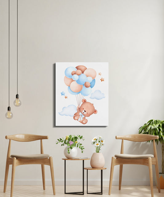 Adorable Teddy Bear Floating on Balloons Canvas Wraps