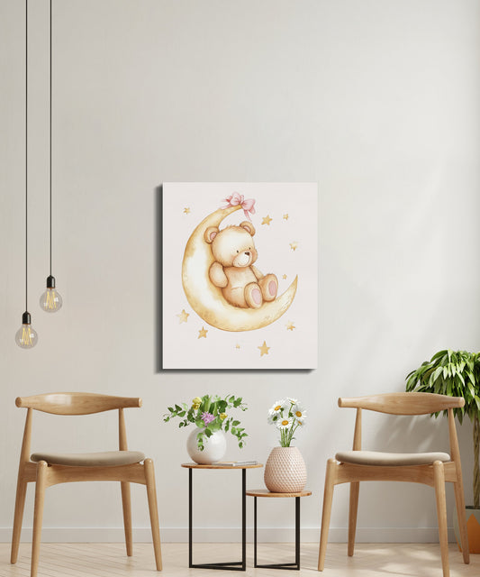 Adorable Teddy Bear on Moon Nursery Canvas Wraps
