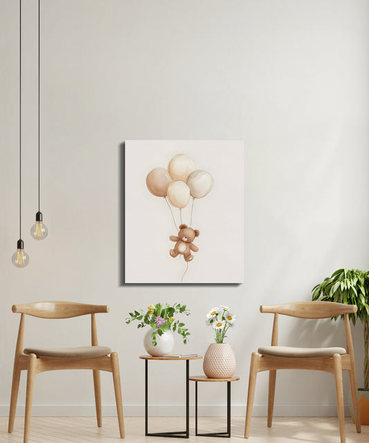 Adorable Teddy Bear with Balloons Canvas Wraps Nursery Wall Art