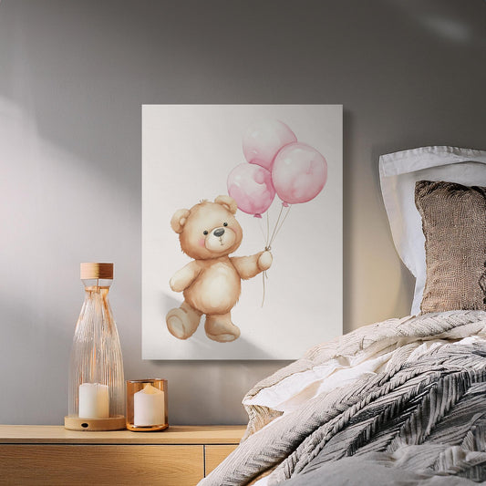 Adorable Teddy Bear with Balloons Nursery Canvas Wraps