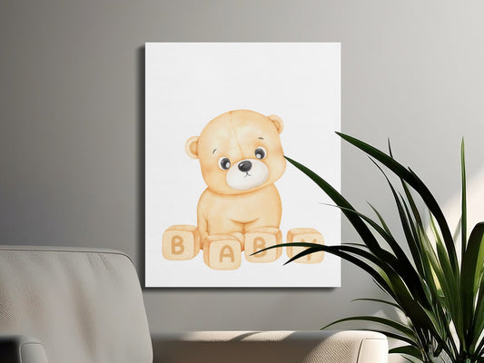 Adorable Teddy Bear with Blocks Nursery Wall Art Canvas Wraps