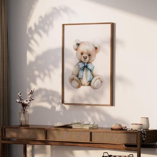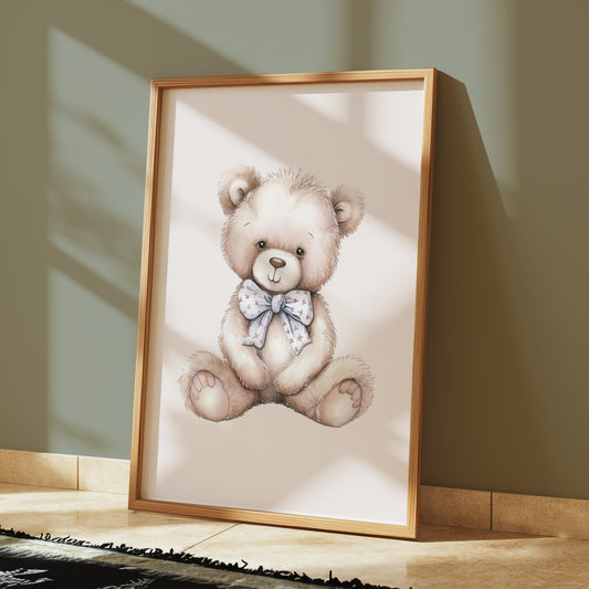 Adorable Teddy Bear with Bow Nursery Decor Posters