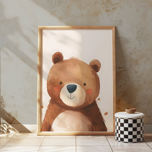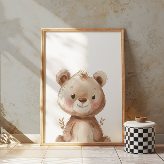 Adorable Watercolor Bear Illustration Wall Art Posters