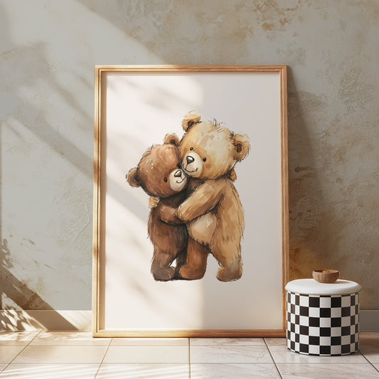 Adorable Teddy Bears Hugging Artwork for Cute Posters