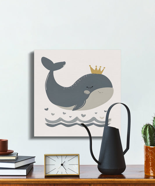 Adorable Whale With Crown Nursery Wall Art Canvas Wraps