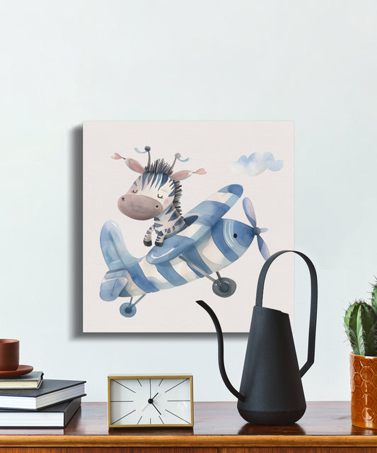 Adorable Zebra Pilot Flying Plane Canvas Wraps