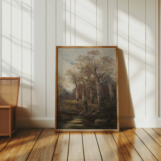 Autumn Forest Scene with Hunters Art Print Posters