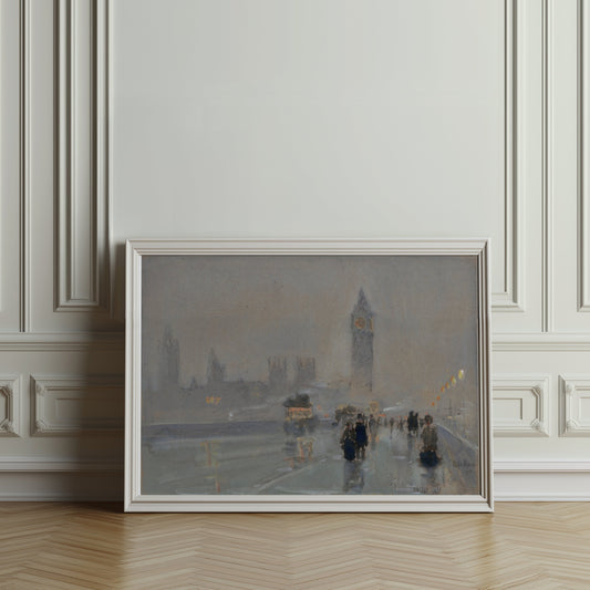 Big Ben London Skyline in Foggy Night Walkway Posters