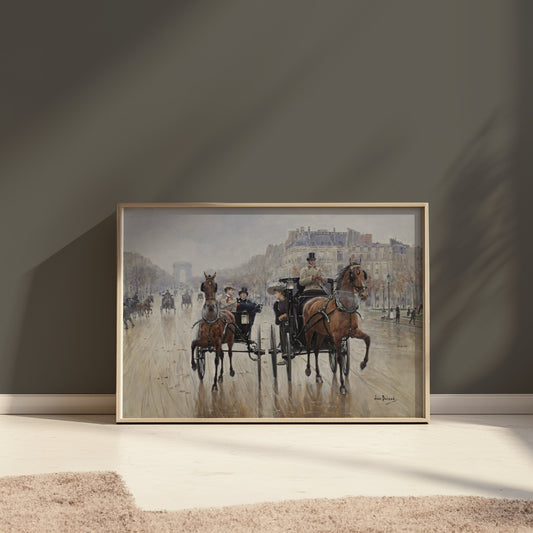 Parisian Horse-Drawn Carriage Scene Art Posters