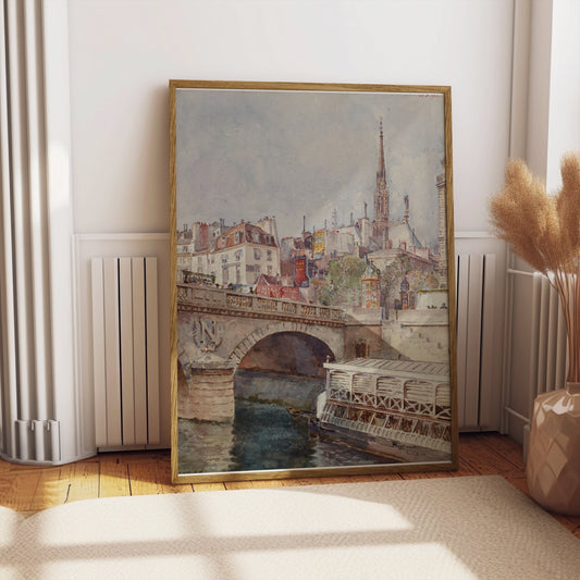 Captivating Vintage Cityscape of River and Cathedral Posters