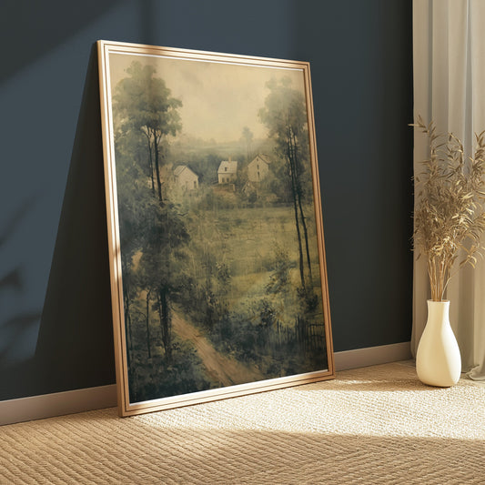 Vintage Countryside Landscape Art Green Aesthetic Posters