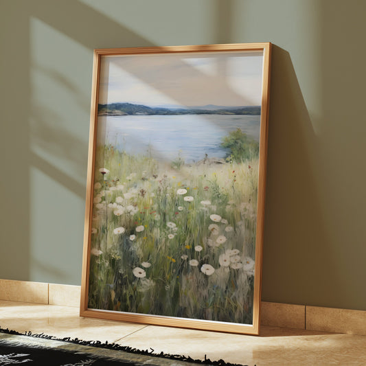 Wildflower Meadow by a Serene Lakeside View Posters