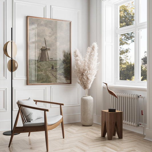 Windmill with Dirt Path and Woman Classic Style Posters