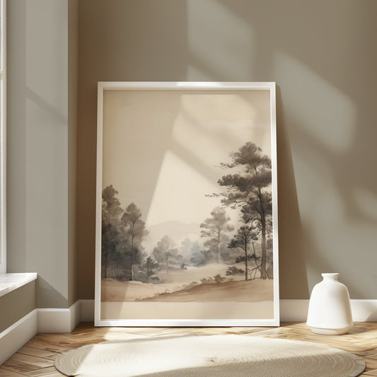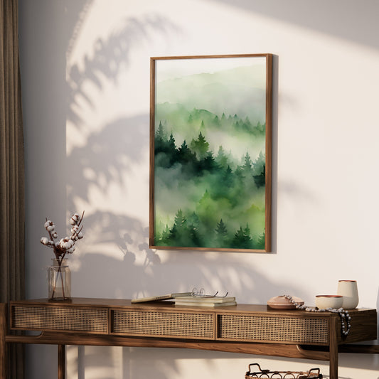 Serene Forest Landscape Watercolor Wall Art Posters