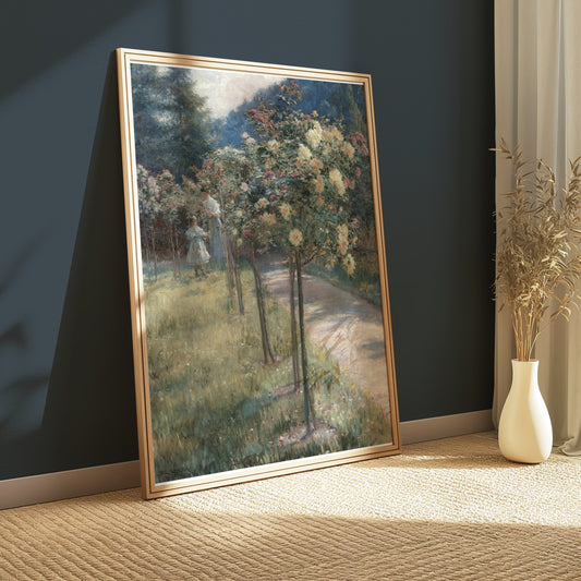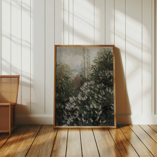 Serene Nature Scene with Lush Greenery and Flowers Posters
