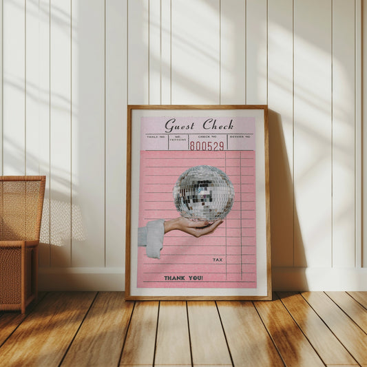 Retro Guest Check Poster with Disco Ball Posters