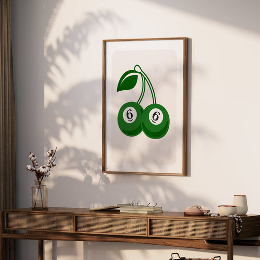 Green Cherries Poster with Number 6 Design Posters