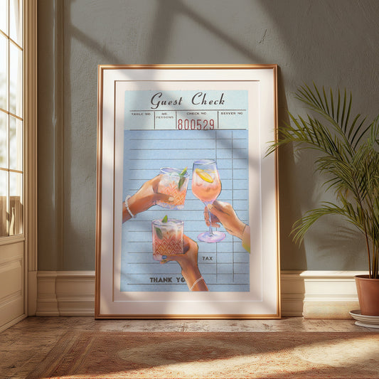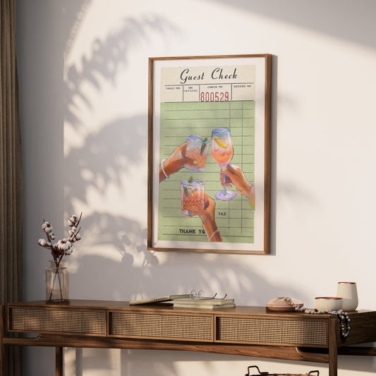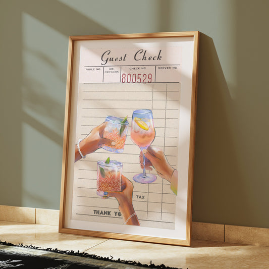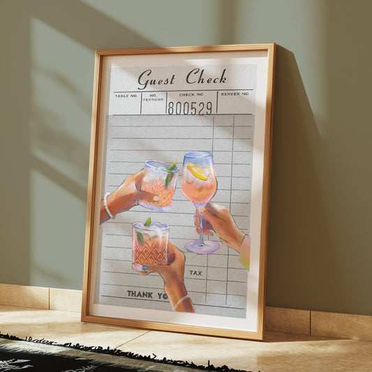 Unique Guest Check with Drinks Art Decor Posters