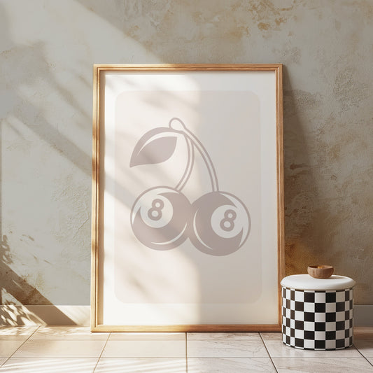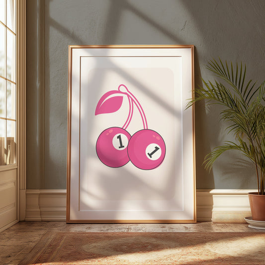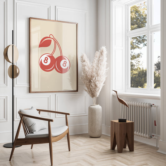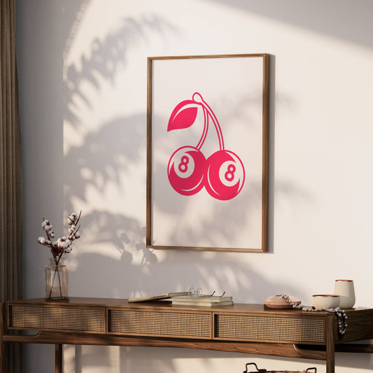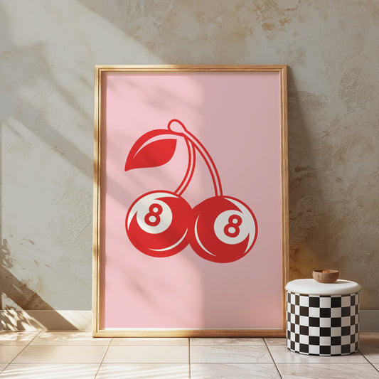 Vintage Red Cherry Eight Ball Design Art Posters