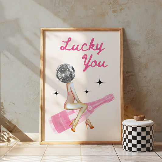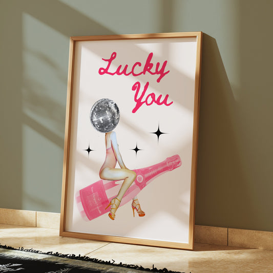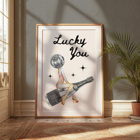 Lucky You Disco Ball and Champagne Aesthetic Posters
