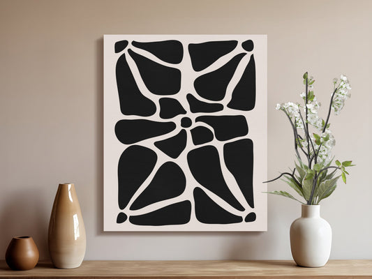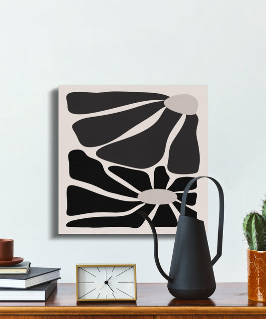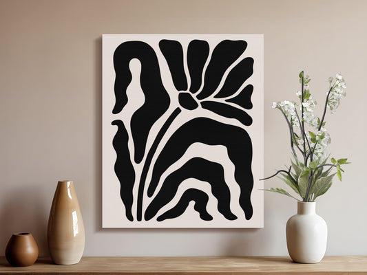 Bold Abstract Floral Wall Art Black and Beige Canvas Wraps
