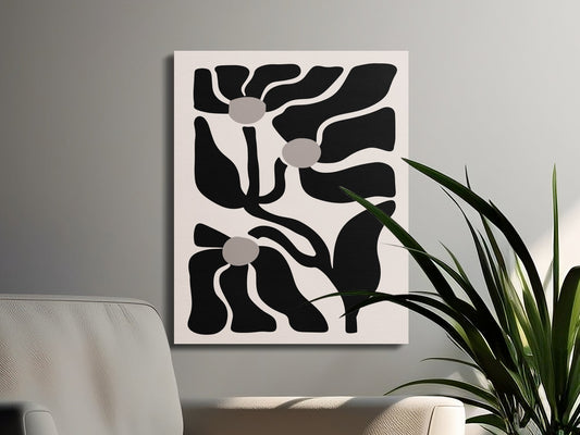Abstract Black and White Floral Wall Art Canvas Wraps