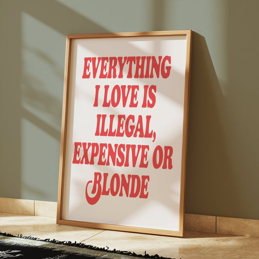 Everything I Love Is Illegal Expensive or Blonde Posters