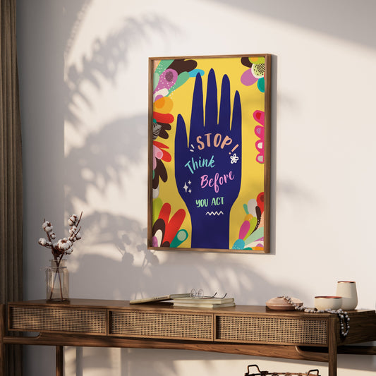 Motivational Hand Drawing Stop Think Before You Act Posters
