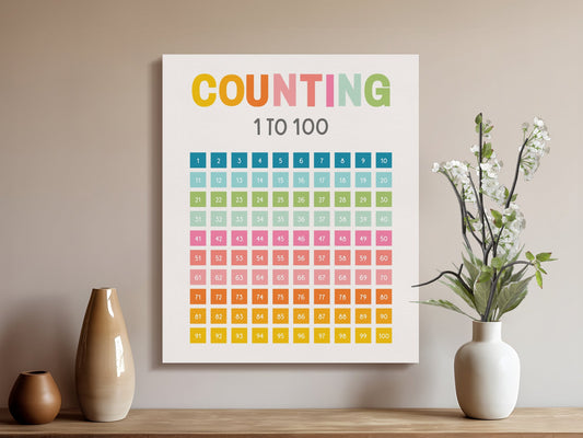 Counting 1 to 100 Chart Nursery Wall Art Canvas Wraps