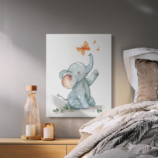 Cute Elephant and Butterflies Nursery Canvas Wraps
