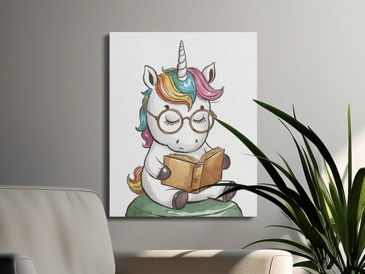 Cute Reading Unicorn Nursery Wall Art Canvas Wraps