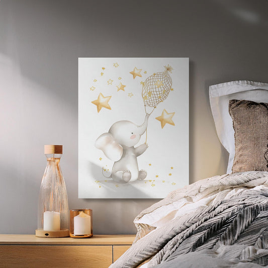 Dreamy Elephant and Stars Nursery Canvas Wraps